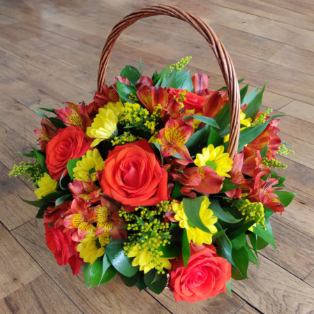 A beautiful mix of orange gerberas, white and yellow roses.