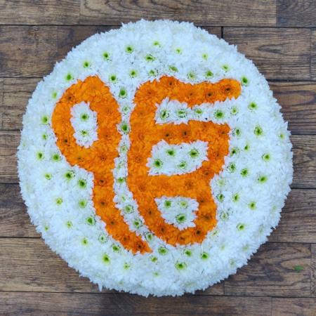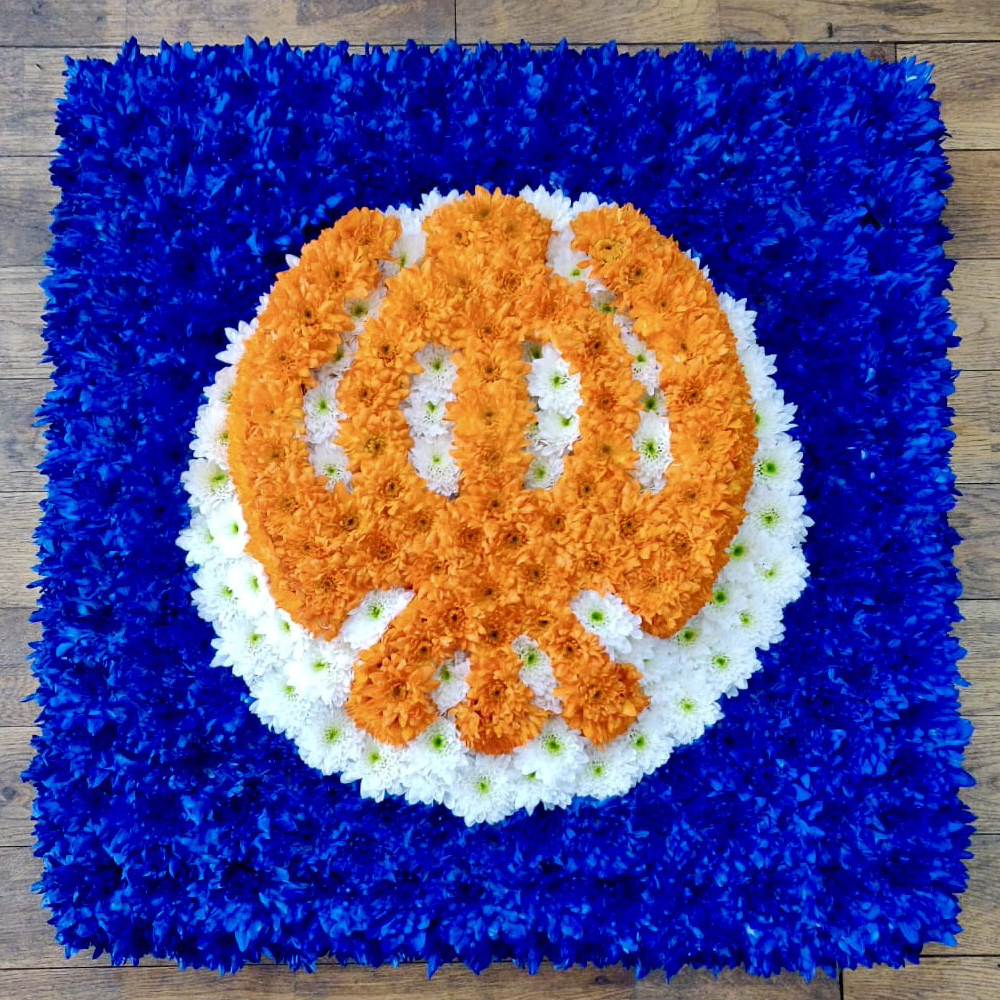 A Khanda in chrysanthemums on a square base, made in a colour of your choice.