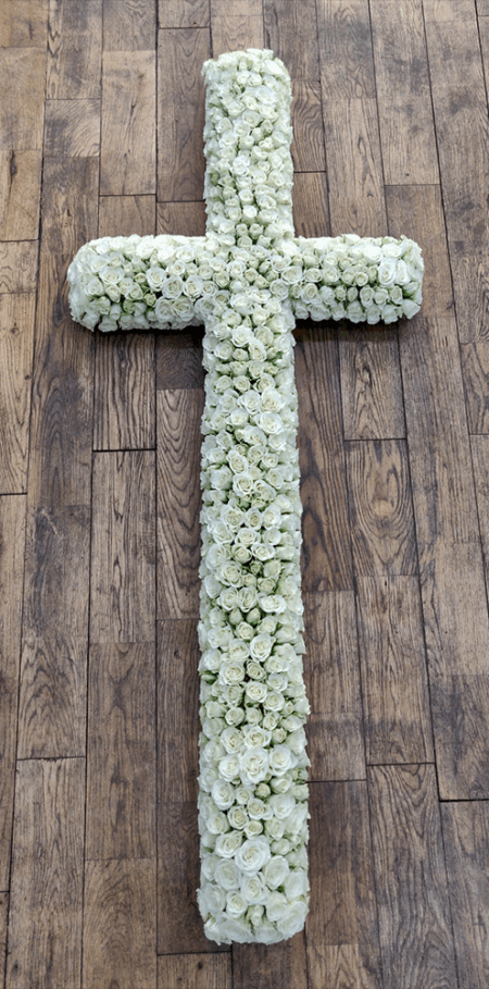 A tribute made entirely with white spray roses.